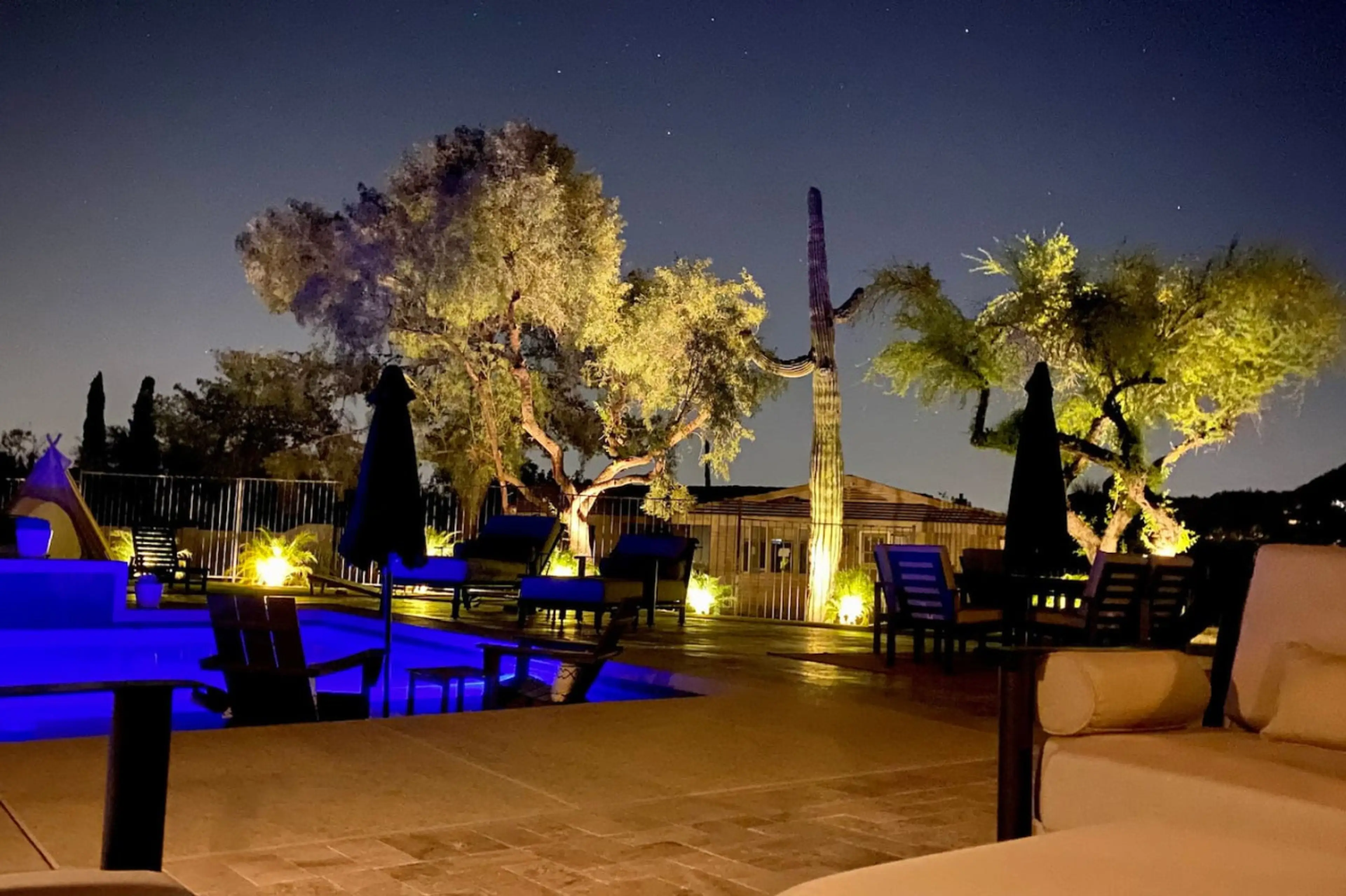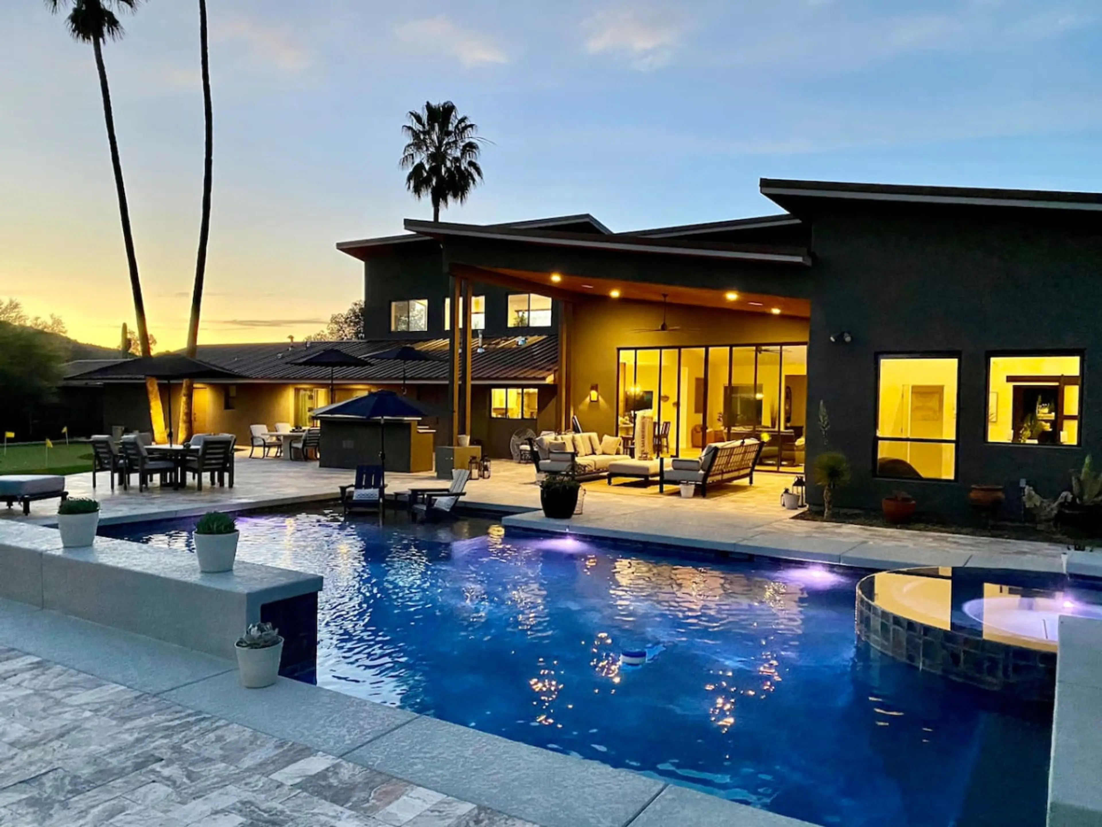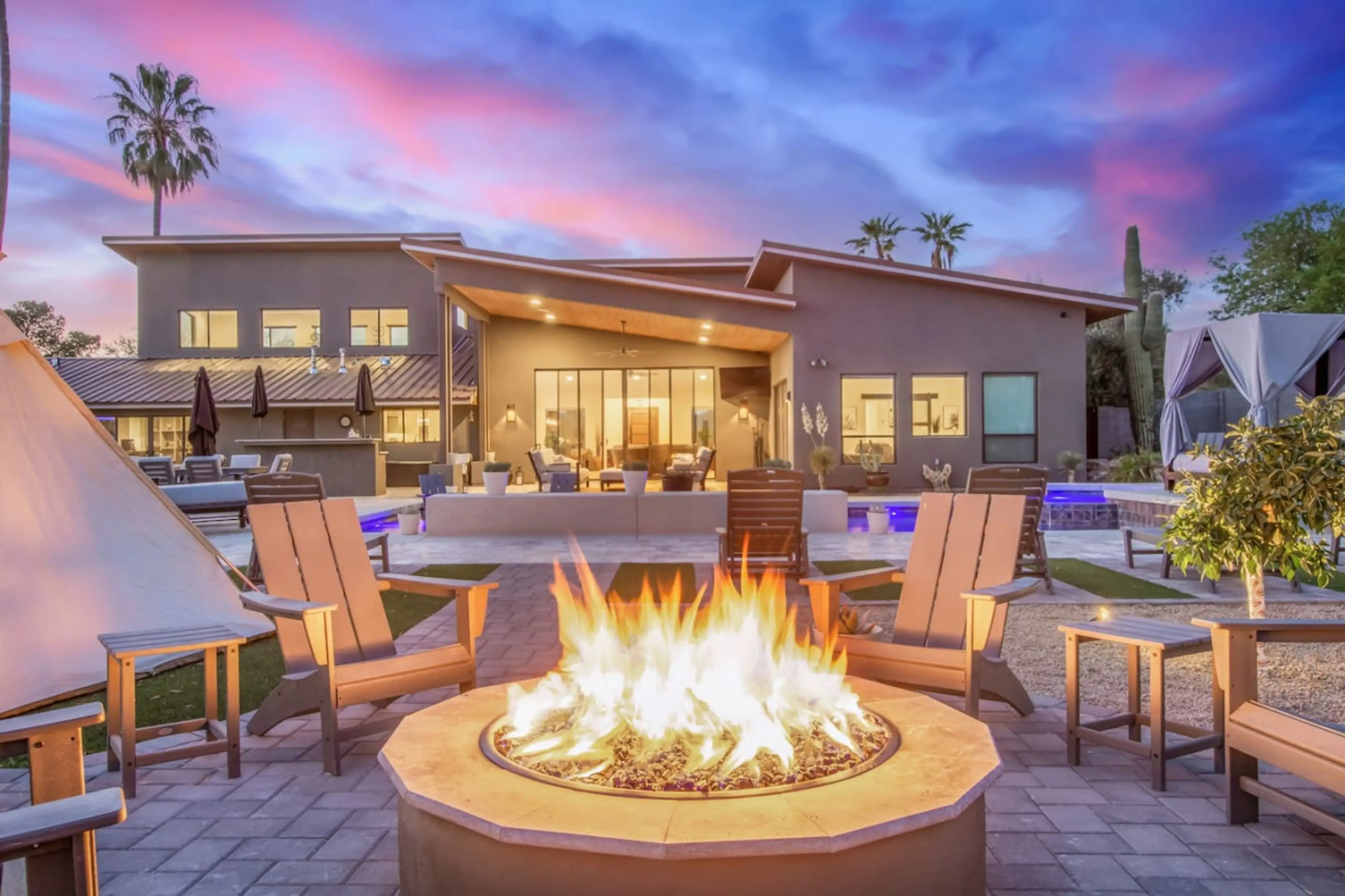 Luxury micro resort! Long Rifle Oasis is the perfect vacation getaway! Nestled just behind the boulders, at the base of Black Mountain in Carefree, AZ. Complete with a gorgeous chef's kitchen, game room, movie room, spacious outdoor seating for entertaining, large private pool and hot tub, gas fir...